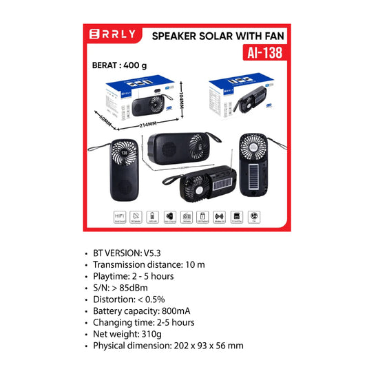 VENTILADOR PARLANTE LINTERNA RADIO SOLAR